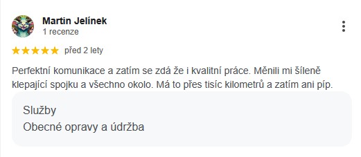 Perfektní komunikace a zatím se zdá že i kvalitní práce. Měnili mi šíleně klepající spojku a všechno okolo. Má to přes tisíc kilometrů a zatím ani píp.